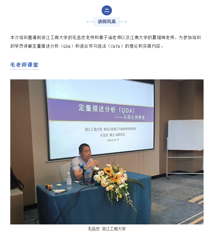 2024年5月17-18日,由食品伙伴網(wǎng)主辦的SEPA 感官分析QDA/CATA 實操培訓(xùn)班在杭州萬信瑞鉑酒店圓滿結(jié)束!來自豐益、貴州習(xí)酒、雅培、伊利伊諾科技等多家企事業(yè)單位學(xué)員參加了此次培訓(xùn)。