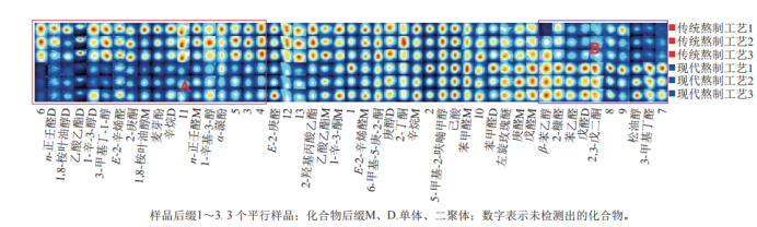 圖5 不同熬制工藝“佛跳墻”GC-IMS揮發性物質指紋圖譜