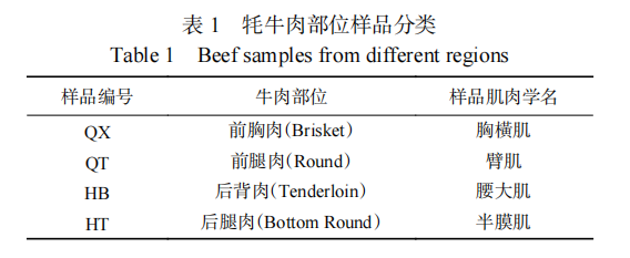 青海省牦牛養殖數量位居全國第一,牦牛肉烤制后風味深受消費者喜愛,但不同部位風味、肉質差異較大,要尋找最適合燒烤的牦牛肉部位,需要對牦牛肉不同部位的滋味、氣味和風味特征進行研究。