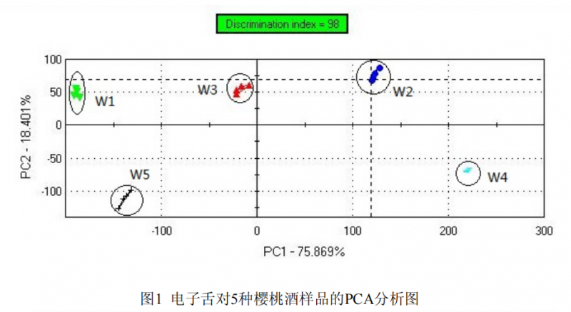 櫻桃酒由櫻桃經過發酵等特定的工藝釀制而成,不僅含有櫻桃幾乎所有的營養成分,而且還具有獨特的色、香、味,深受消費者的青睞。本研究主要利用電子舌技術對不同品牌的櫻桃酒進行辨別,并通過 PCA、PLSR 法對感官屬性與不同傳感器的相關性進行了研究,為傳感器的篩選提及定量預測感官屬性供了一定的理論指導作用。