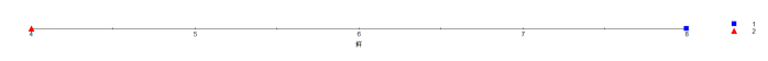 圖4 樣品的滋味分布圖(注:1為常溫奶;2為鮮牛奶)