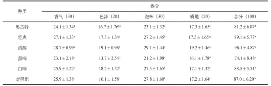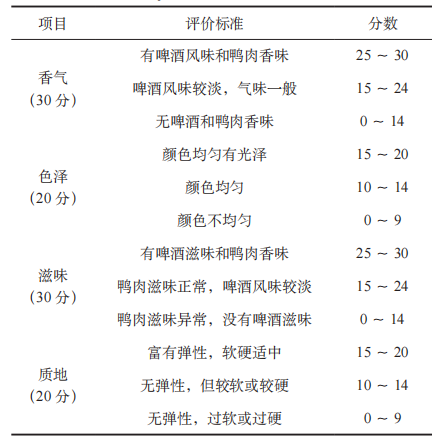表2 不同啤酒對啤酒鴨的感官品質影響