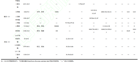 表3 手撕牛肉干揮發性化合物種類、含量及OAV
