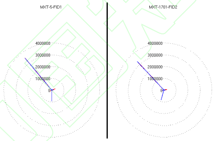 將GC數據進行同組疊加處理可以更清晰地觀察組內共有特征和細微差異,有助于識別同組樣本中普遍存在的化合物及其相對含量。圖2~圖9為各組(組1~組4)沒藥樣品原始GC疊加圖和雷達圖疊加圖,GC疊加圖分別展示MXT-5非極性毛細管柱與MXT-1701中極性毛細管柱結果,雷達圖也可以看出組間和組內沒藥峰面積和保留時間的差異。組1(JZ1∼JZ4、JZ6)、組2、組3、組4(K1、M5、J1、W1、JZ5)在各自的GC疊加圖和雷達圖疊加圖中均呈現出相似特征:出峰時間差異不大、峰面積差異較大。