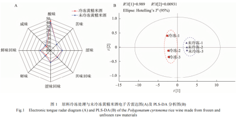 電子舌:冷凍黃精米酒酸味上升、咸味和鮮味下降,重復性好,與未冷凍米酒可區分。