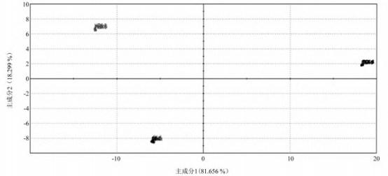 圖1 3種色澤氣流膨化青稞米的電子鼻PCA分析圖