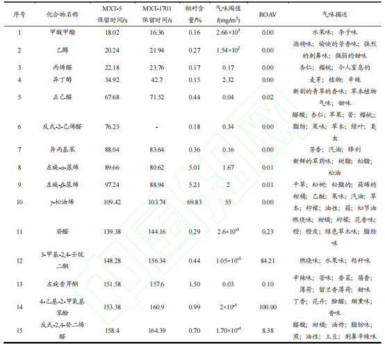表4 草果主要差異揮發性化合物定性與定量分析結果